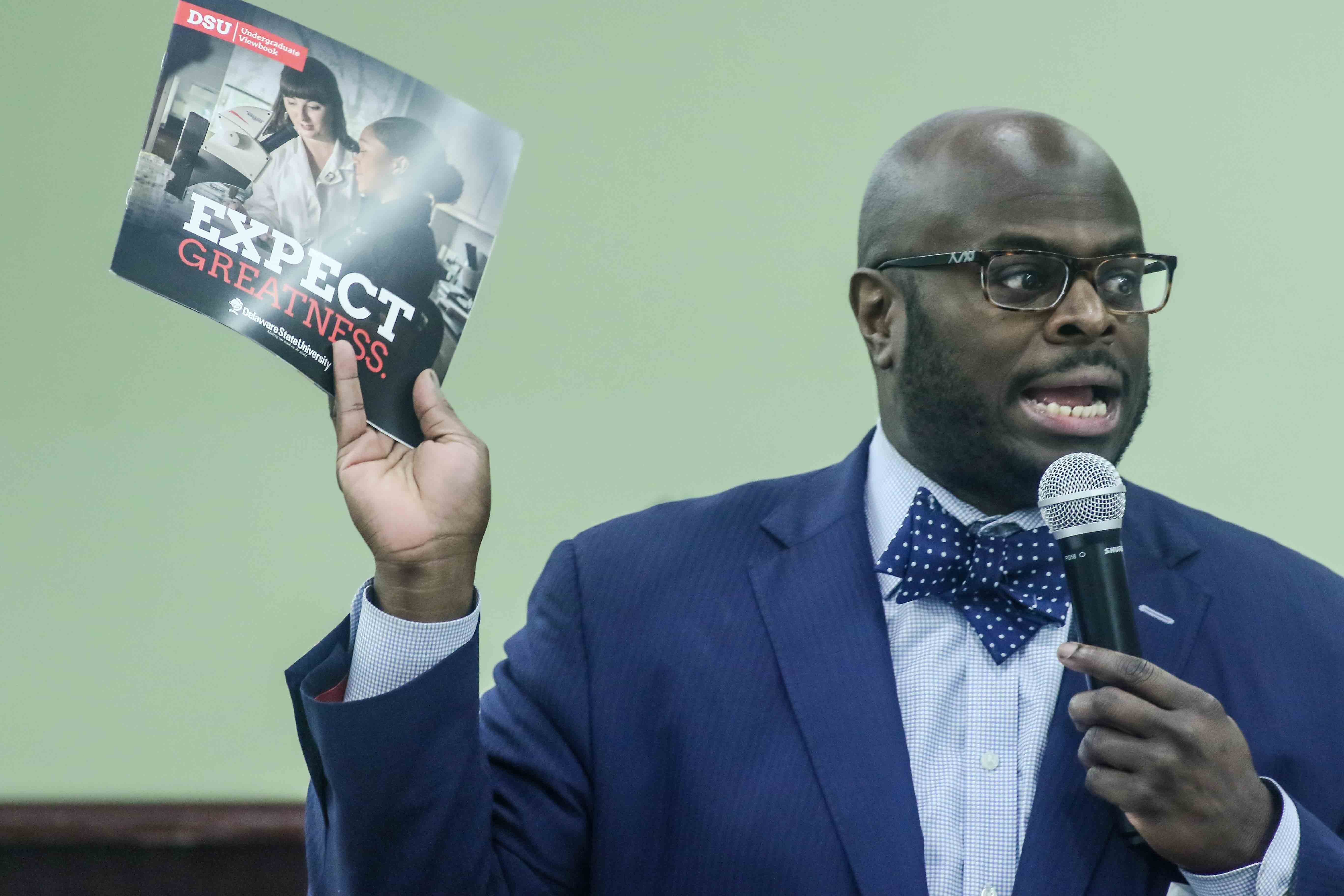 File Photo: Delaware State University Executive Vice President and Provost Tony Allen delivers remarks during the Sixth annual Ebony Tie Affair Youth Luncheon at Delaware State University Saturday, Nov 18, 2017, in Dover, Del. Photo By Saquan Stimpson