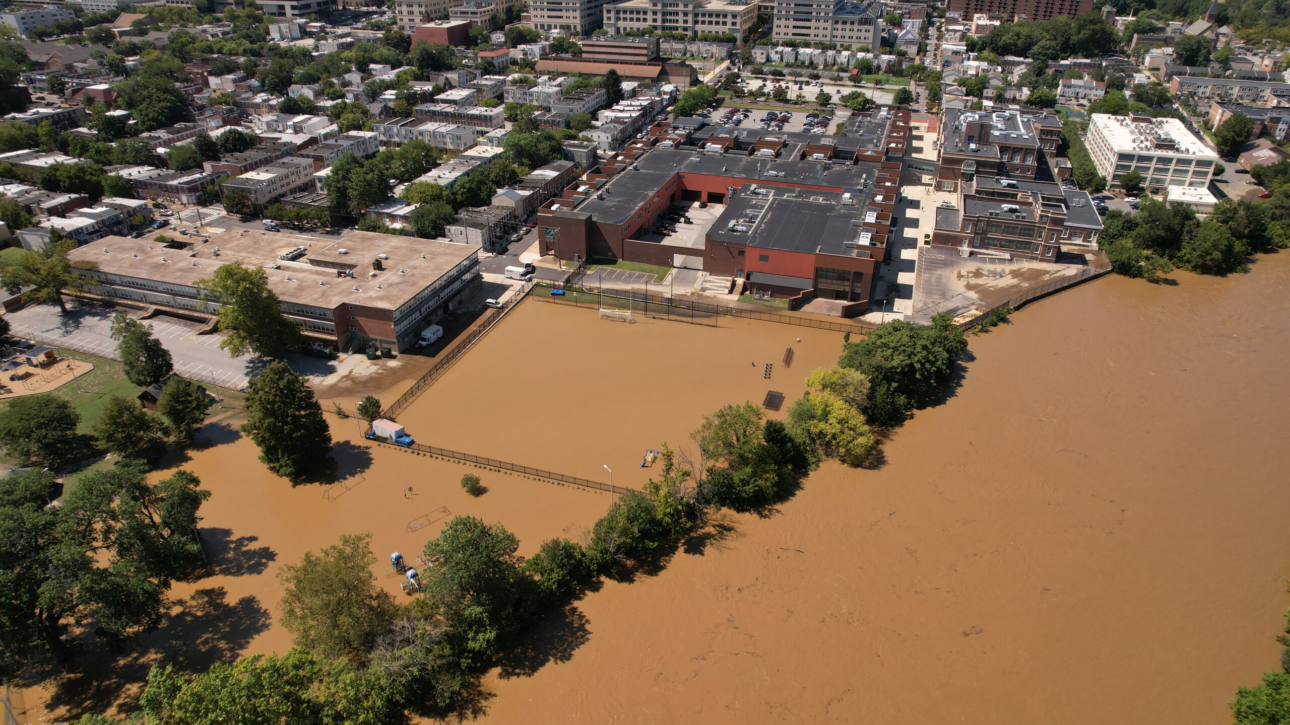 Howard high school of technology practice football field submerged Thursday, September 2, 2021, on the Eastside of Wilmington, DE. Photo By Saquan Stimpson