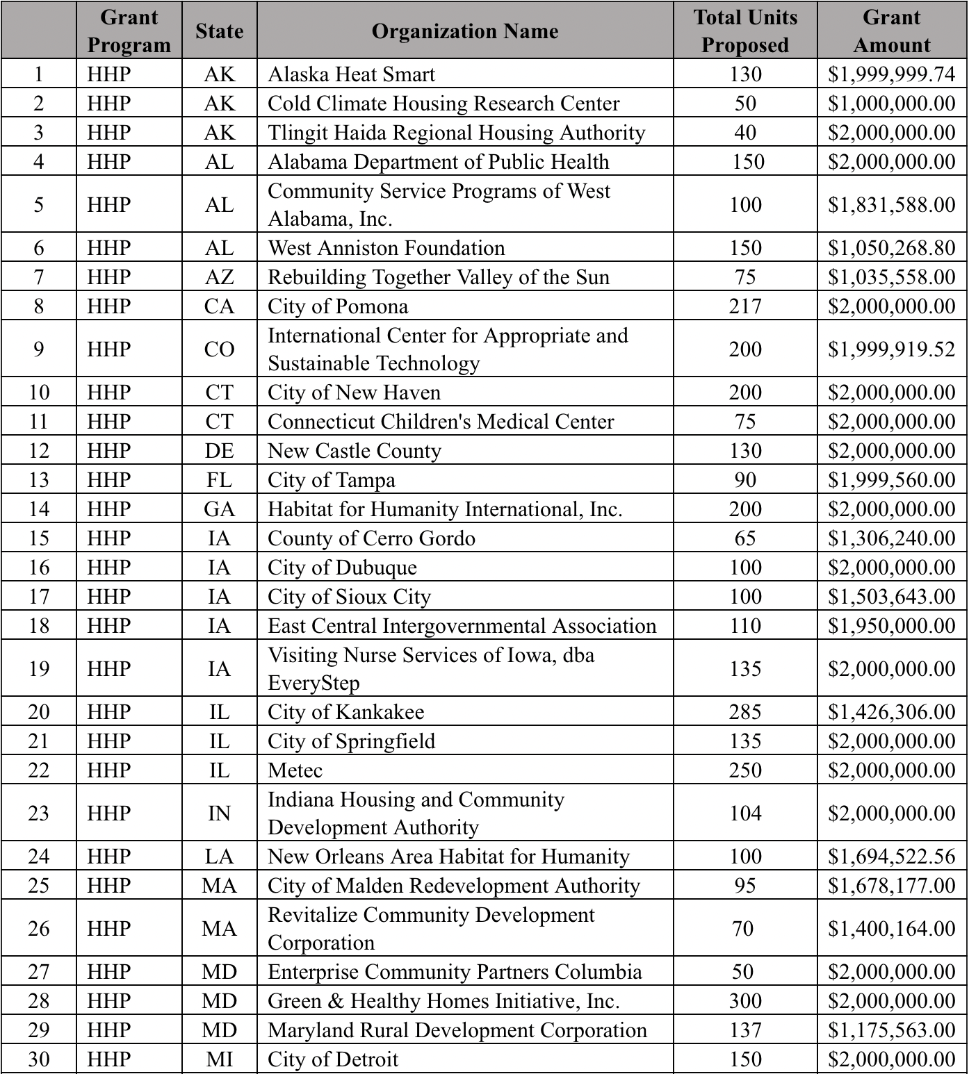 In the coming weeks, grantees will begin setting up and implementing their programs and will make applications available for families who are interested and eligible for their local Healthy Homes Program.