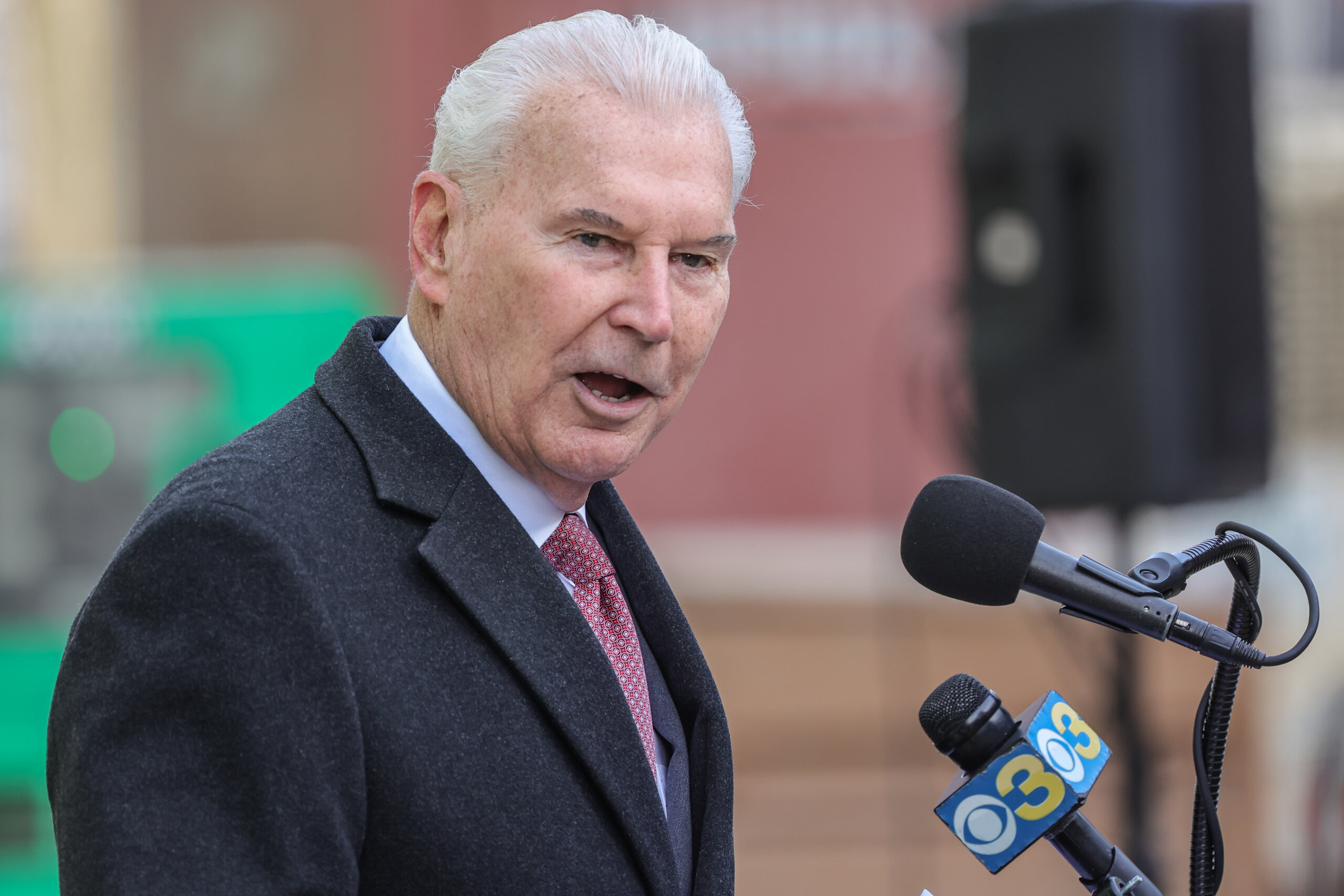 Mayor Michael S. Purzycki gives remarks during Buccini/Pollin Group, Inc., celebration of the topping out of Crosby Hill residential development Wednesday, Jan. 19, 2022, at 517 Shipley Street in Wilmington, DE. Photo By Saquan Stimpson