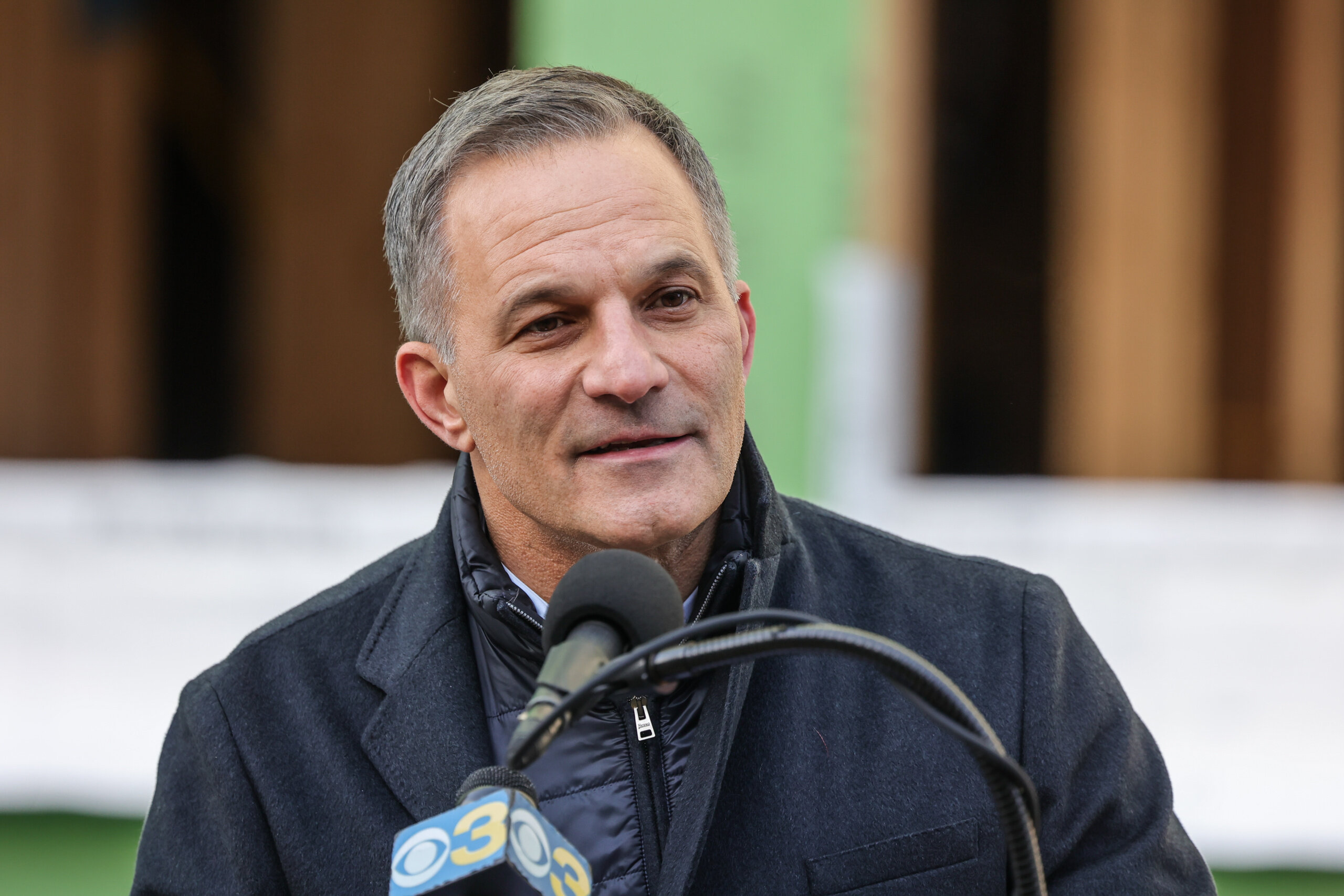 Wilmington-based developer, Rob Buccini of The Buccini/Pollin Group, Inc., gives remarks during the celebration of the topping out of Crosby Hill, their latest residential development Wednesday, Jan. 19, 2022, at 517 Shipley Street in Wilmington, DE. Photo Saquan Stimpson
