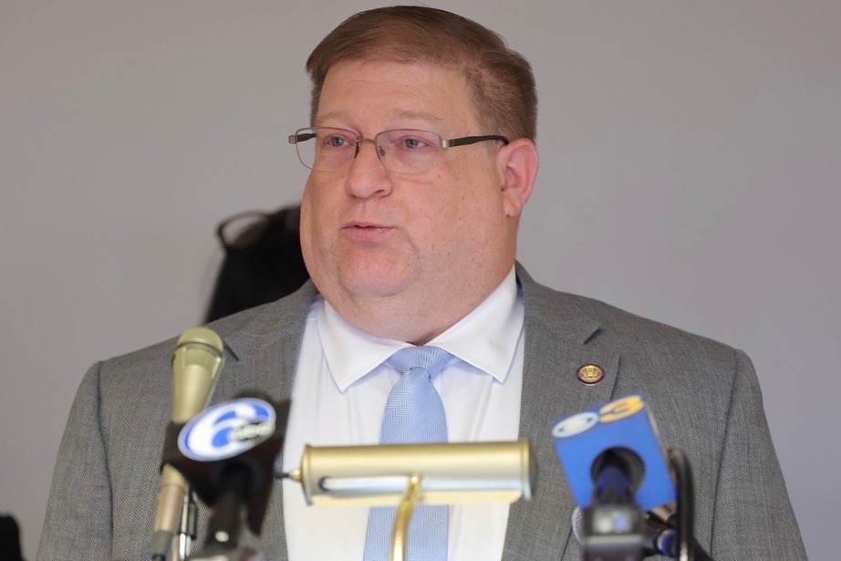 Brian Moore, Human Trafficking Interagency Coordinating Council Chair gives remarks to the media during a press conference to announce anti-human trafficking initiative Monday, January 31, 2022, at the Carvel State Office Building in Wilmington, Delaware. Photo by Saquan Stimpson