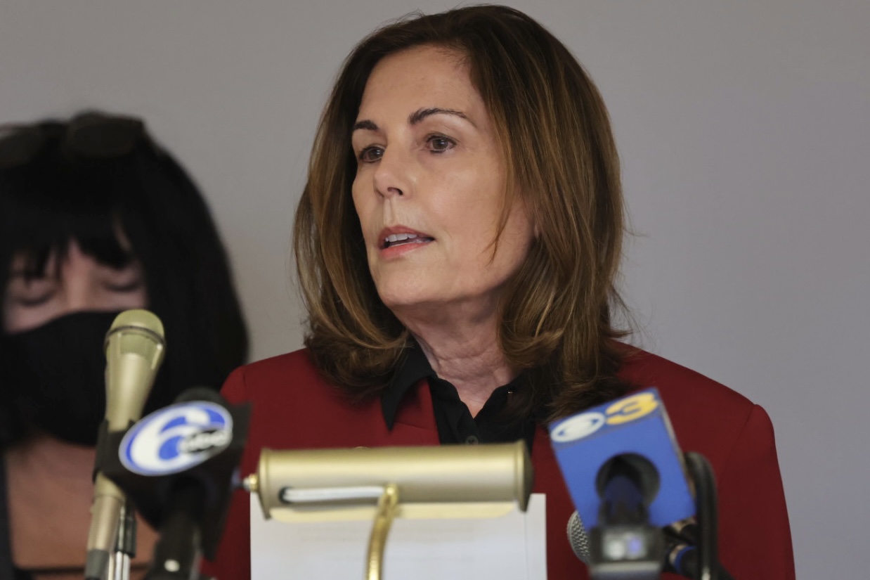 Attorney-General Kathy Jennings gives remarks to the media during a press conference to announce anti-human trafficking initiative Monday, January 31, 2022, at the Carvel State Office Building in Wilmington, Delaware. Photo by Saquan Stimpson