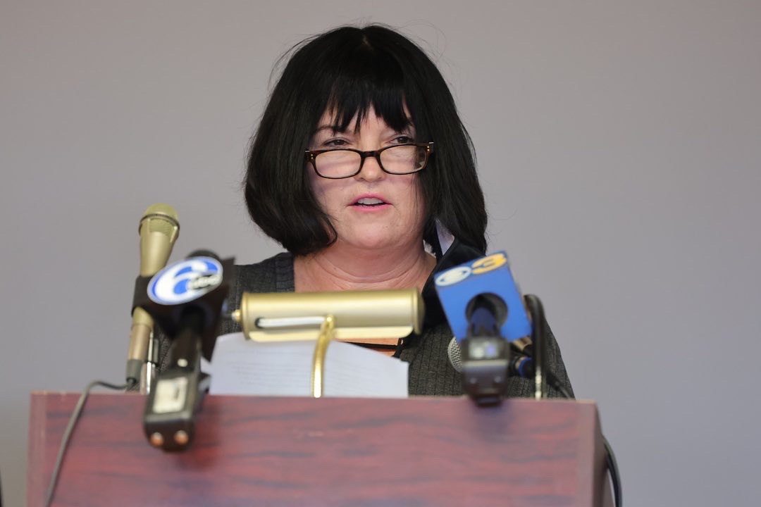Rep. Kim Williams gives remarks to the media during a press conference to announce anti-human trafficking initiative Monday, January 31, 2022, at the Carvel State Office Building in Wilmington, Delaware. Photo by Saquan Stimpson