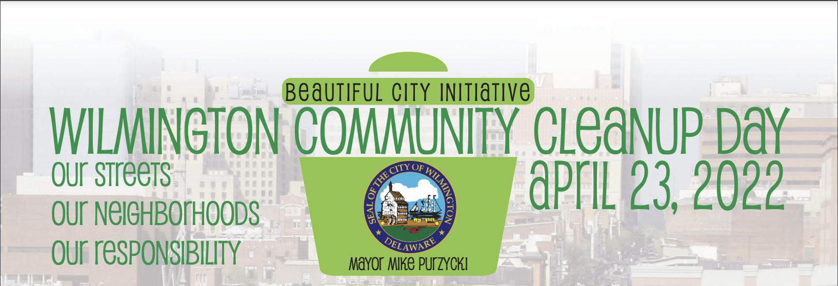 Mayor Mike Purzycki today urged residents, community groups, and businesses around the City to participate in Wilmington’s annual Community Clean-Up Day on Saturday, April 23 from 8 a.m. to 11 a.m. The Citywide clean-up is one element of Wilmington’s Beautiful City campaign, launched in 2017 to keep the City clean, and is being held this year in conjunction with Earth Day 2022.